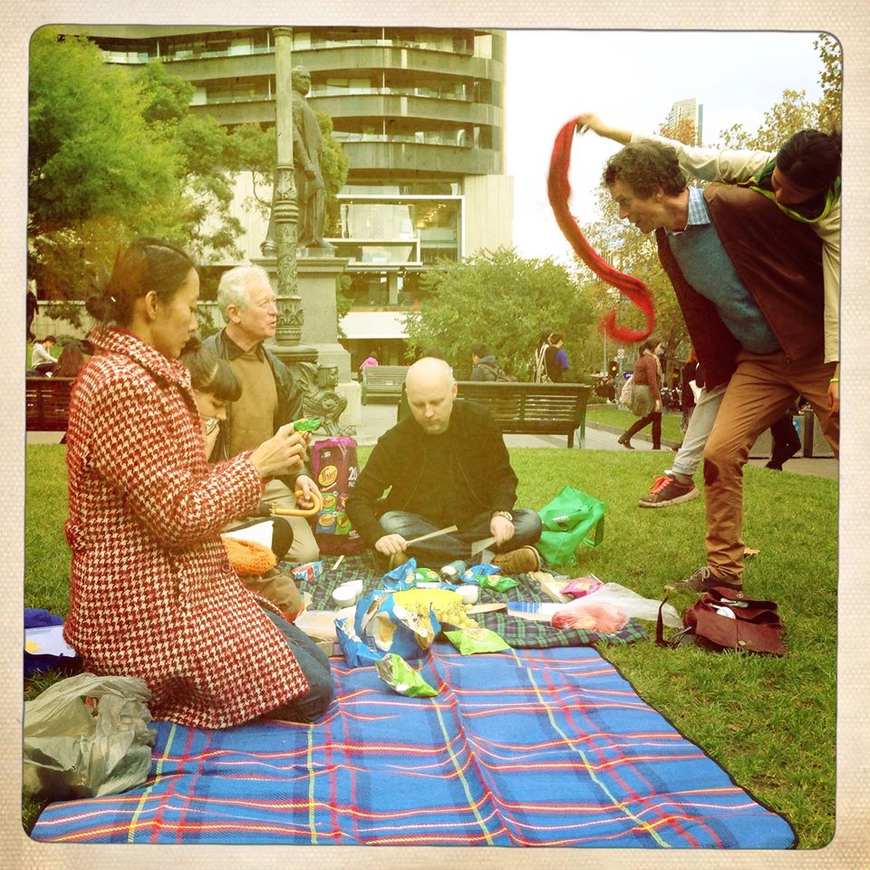 Throughout all of these different approaches to turntables, I’ve regularly felt a strong instinct to not interfere with the machines – to just ‘let them go’. This can be difficult for a performer, especially when performing solo, as one feels like they should be doing something! At one gig I was so pleased with the sounds the combined turntables made, I left the stage for a few minutes, and an installation of six self-playing turntables I did for the Melbourne International Jazz Festival in 2011 had little involvement from me at all once it was started up (visitors were free to play with the settings on the record players themselves, though). This fulfils a long-held conviction of mine that we do not possess music; either as consumers, audiences, performers or composers; instead, we are part of the phenomenon of music. And not only is less sometimes more, but on occasion doing ‘nothing’ actually has a big impact.